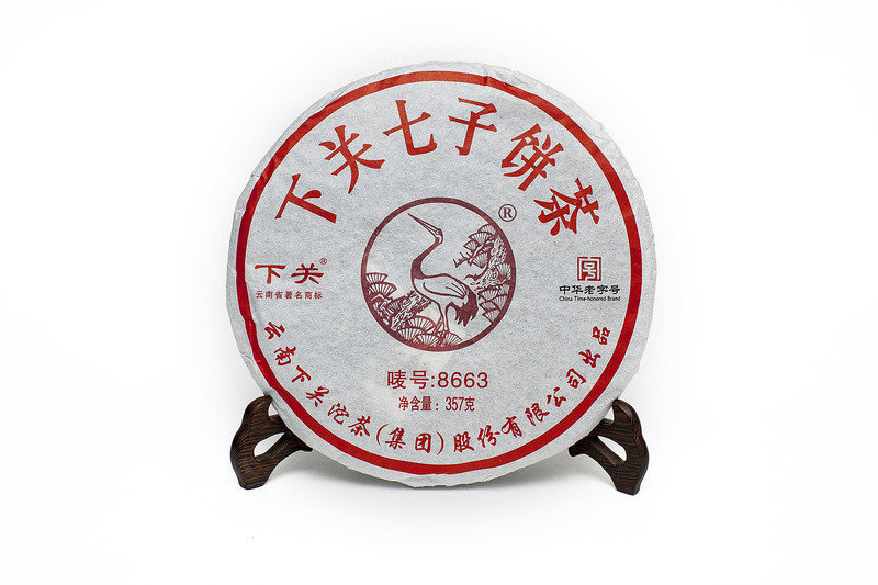 Этот блинчик Шу Пуэра номерной: 8663. Если разобрать цифры то получается, что рецепт разработали в 1986 году, купажирован из мелко и крупнолистового сырья 6го грейда; номер 3 - фабрика СяГуань.